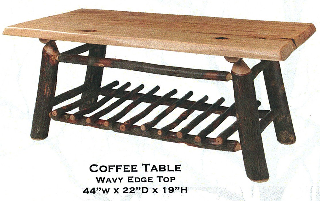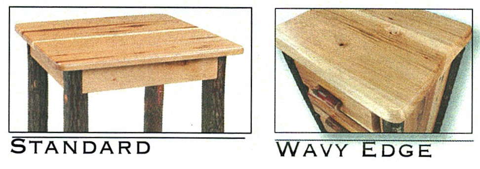 All table styles come in your choice of table top design: Standard or Wavy Edge, with Solid or Trestle lower-shelf style. (See pictures for details and measurements)