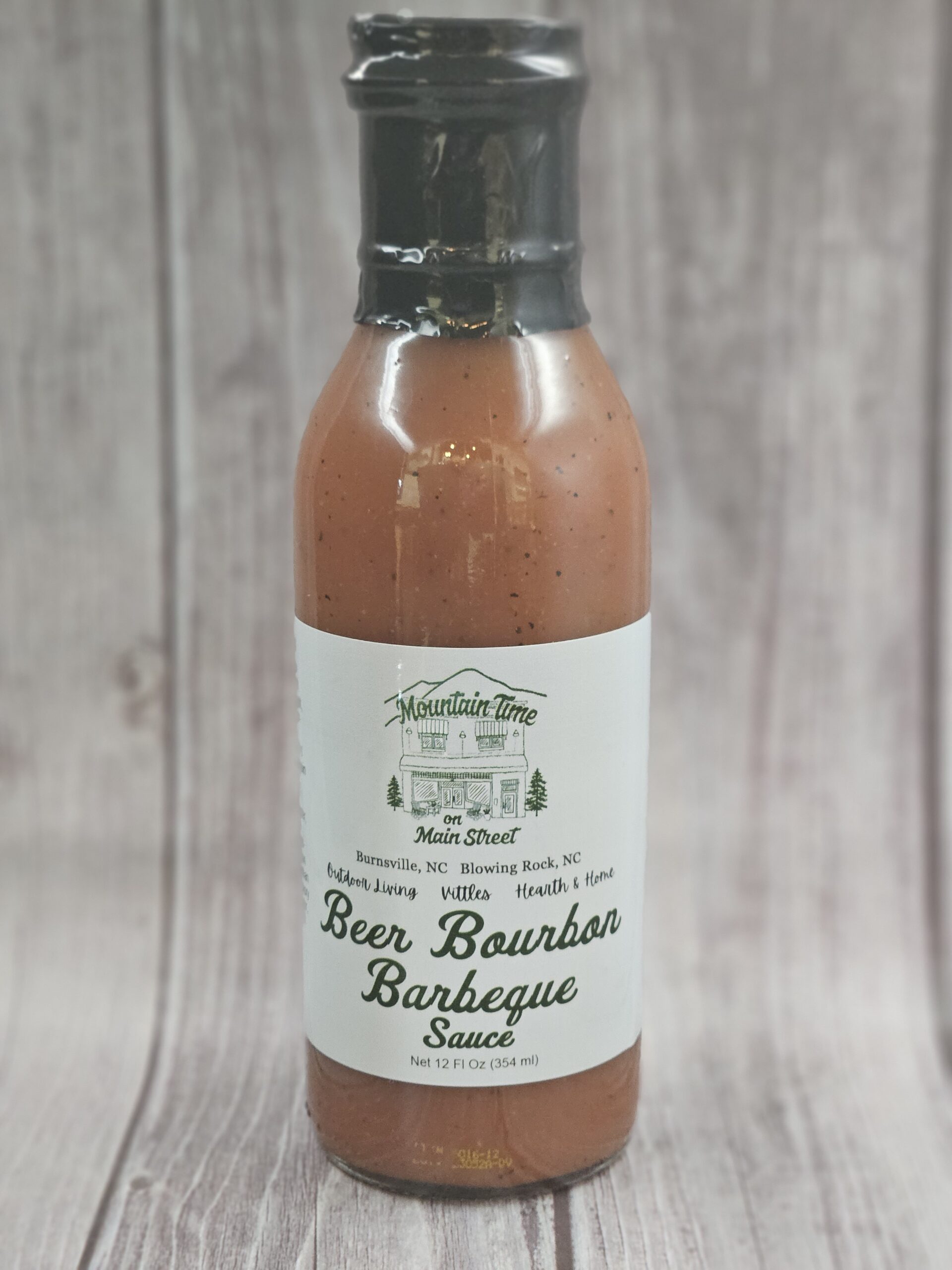 Sweet and tangy beer bourbon barbeque sauce exclusively from Mountain Time on Main Street! 12 fl oz / 354ml