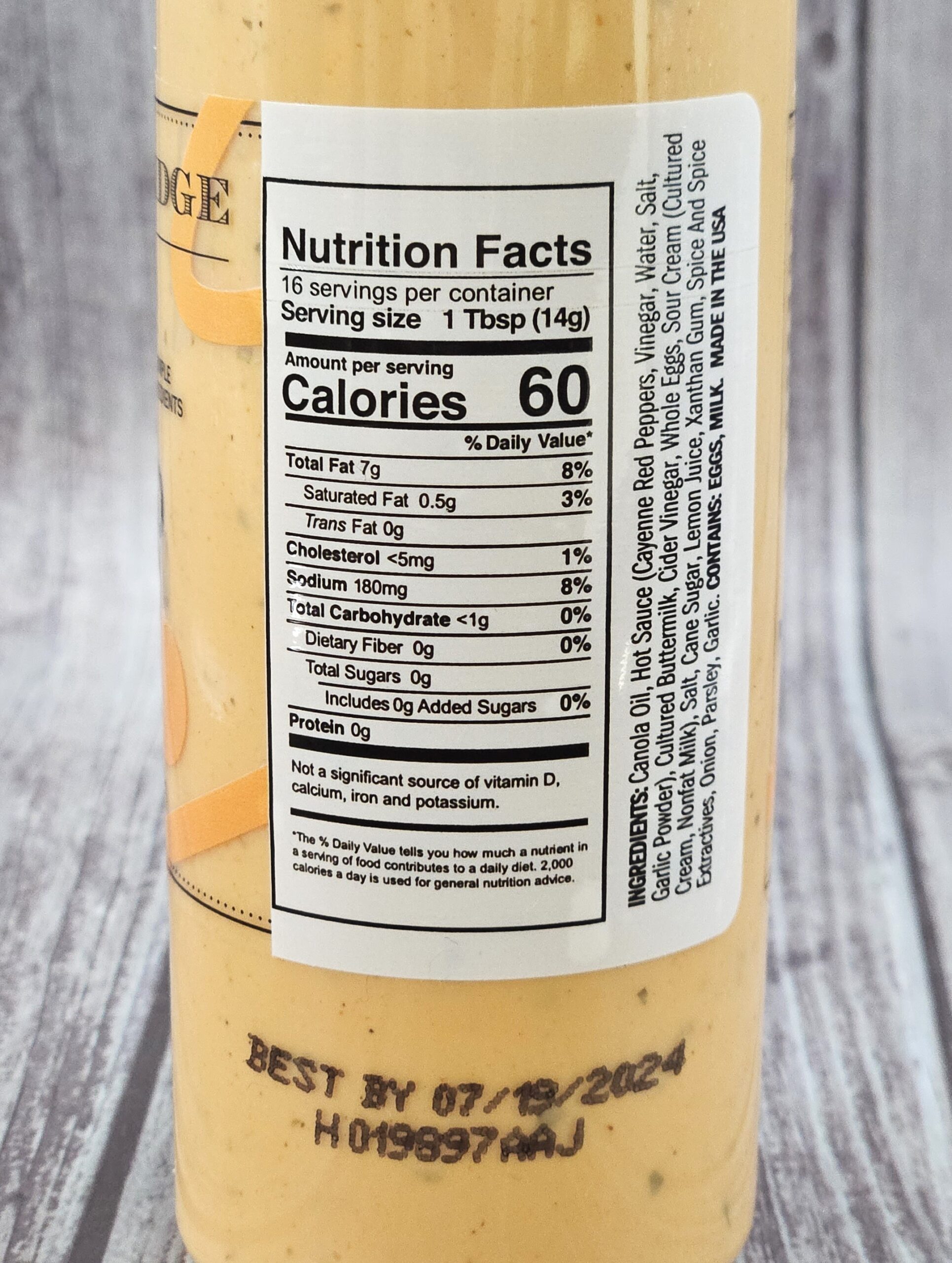 Cool, tangy buttermilk ranch and zesty, spicy buffalo sauce combine to make a well balanced taste sensation! Delicious on wraps, chicken sandwiches or burgers. Great dipping sauce for fried shrimp, chicken tenders or onion rings. Crafted by Terrapin Ridge Farms.