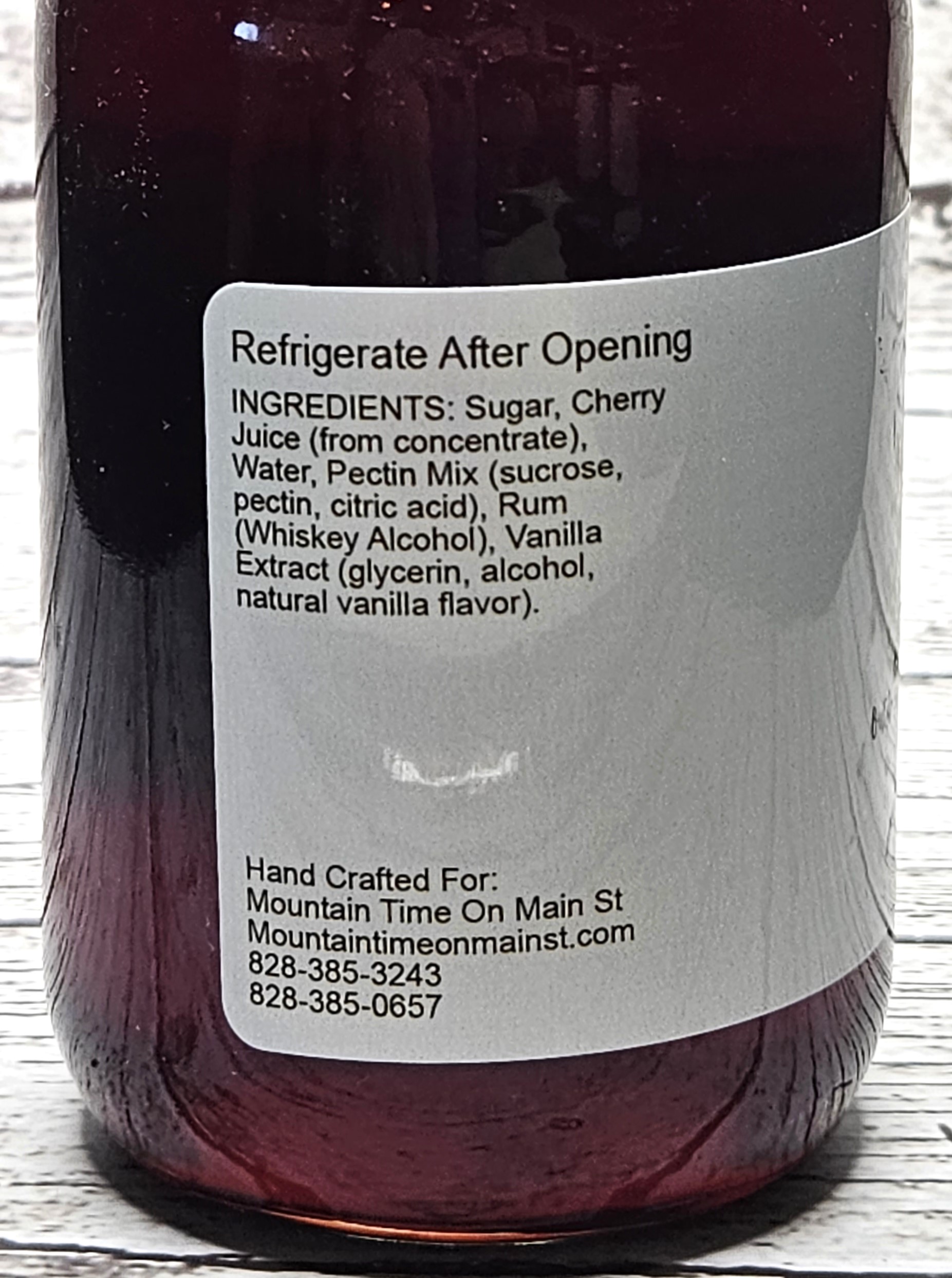 Sweet and lovely cherry vanilla rum jelly exclusively from Mountain Time on Main Street! 9oz / 255g
