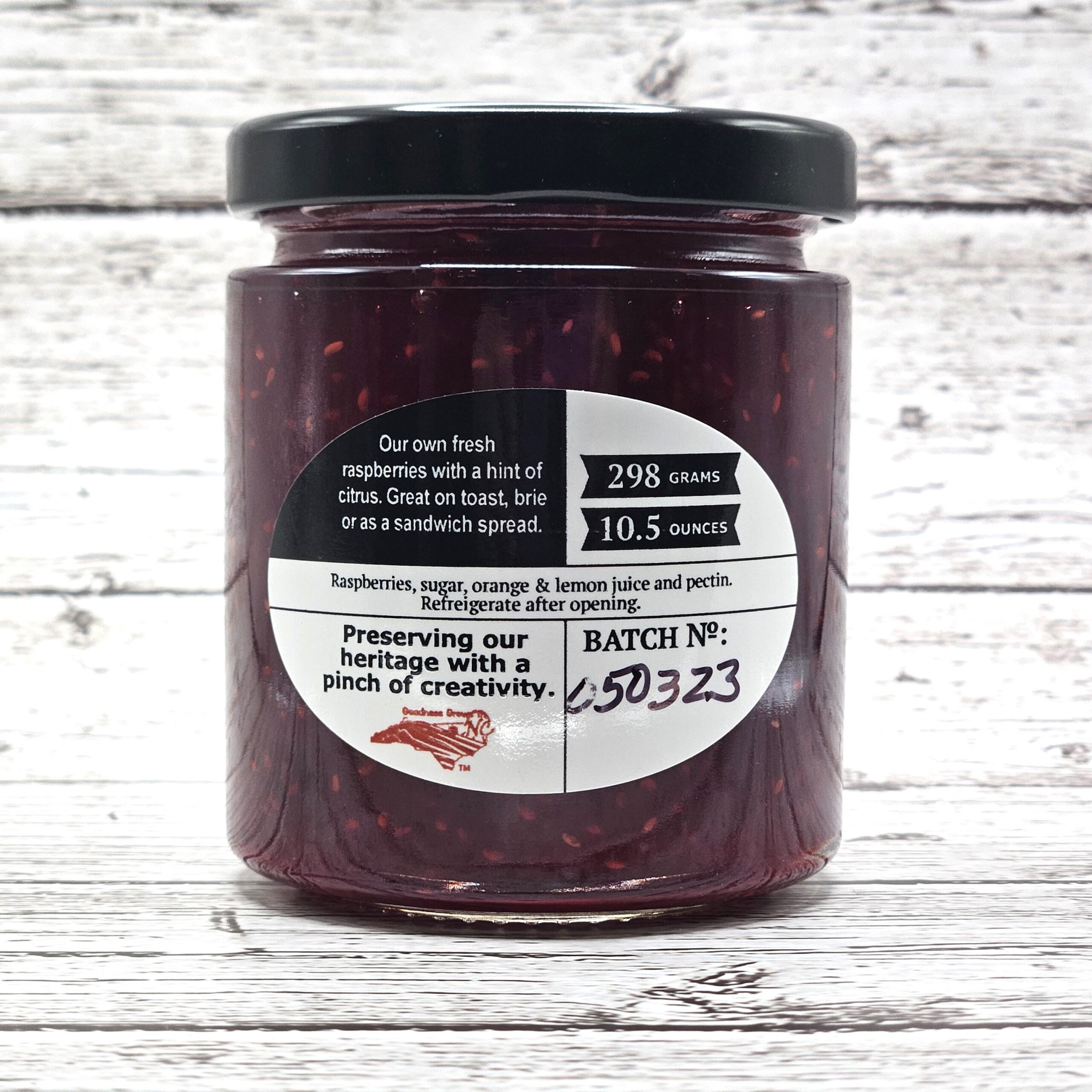 Crow Bar Farm Foods’ own fresh raspberries with a hint of citrus. Great on toast, brie, or as a sandwich spread. Homemade in beautiful Little Switzerland, NC. 298g / 10.5oz