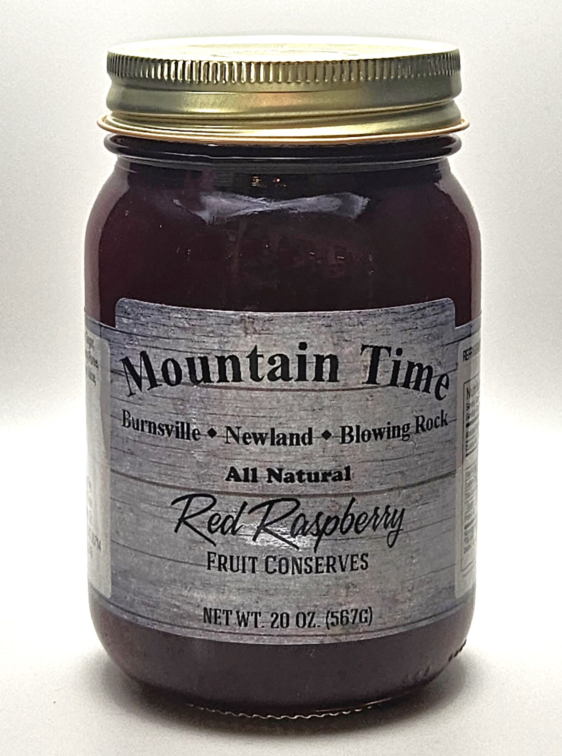 Sweet and tangy all-natural red raspberry fruit conserves exclusively from Mountain Time on Main Street! 16oz / 453g